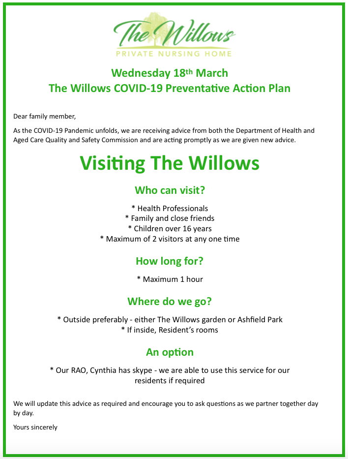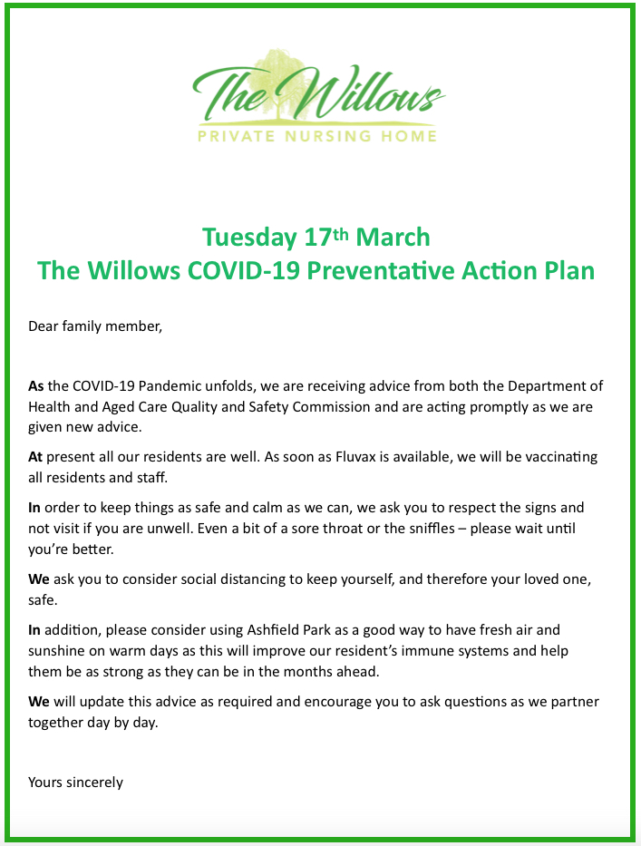 Read MoreThe Willows COVID-19 Preventative Action Plan – 17 March 2020