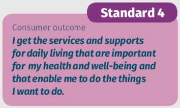 A consumer might have some challenges in their health and abilities, but they still have goals they want to achieve. They also have roles that have meaning, and they want to manage their day-to-day life and live as well as they can. READ MORE. Quality Standards Guidance and Resources