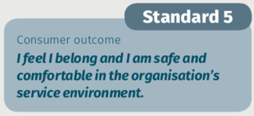 Standard 5 applies to the physical service environment that the organisation provides for residential care, respite care and day therapy centres. It doesn’t apply to home care services where the environment is the consumer’s home. READ MORE. Quality Standards Guidance and Resources